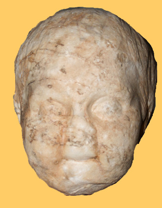 Child head (I century a. C.) made of marble (size: 15,5 cm x 10,7 cm x 12 cm)