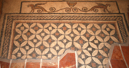 Mosaic (III century a. C.) made of tesseras in limestone and other minerals (size 2,34 m x 1,25 m)