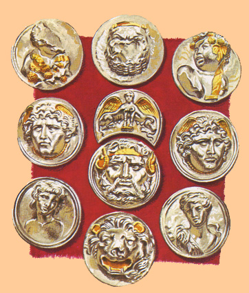 Phalerae: generalmente hechas de plata con incrustaciones de oro; probablemente de origen celta, se entregaban como premios a soldados y oficiales subalternos. |