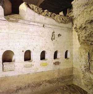 Columbario para depositar las urnas funerarias en las catacumbas de San Sebastián de Roma. |