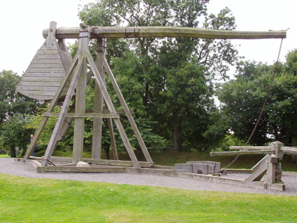 Reproducción de una catapulta medieval, evolución de las catapultas romanas (Caerlaverock Castle, Escocia, Reino Unido) (Foto: Roberto Lérida Lafarga 22/07/2004) |