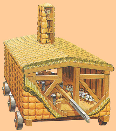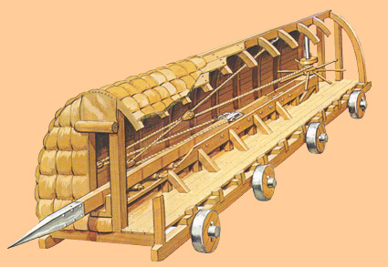 Galería tortuga con ariete para derribar murallas de ciudades asediadas |
