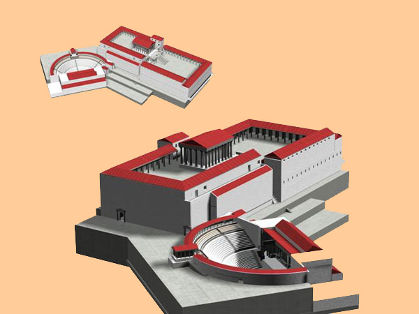 Reconstrucción del foro y del teatro, procedente de MARTÍN BUENO, Manuel y SÁENZ PRECIADO, Juan Carlos: Bilbilis, Calatayud, Zaragoza, 2005 |