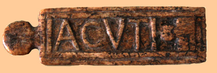 Pieza de hueso de contador de monedas de la ceca de Bilbilis con la inscripción ACUTI. (Foto: Roberto Lérida Lafarga 16/03/2008) |