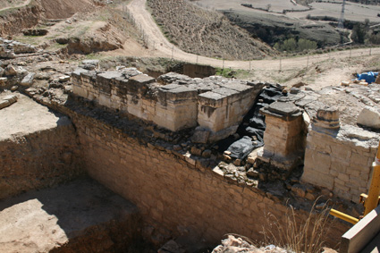 View of the lower part of the scaena of the theatre of Bilbilis. (Photo: Roberto Lérida Lafarga 16/03/2008) |