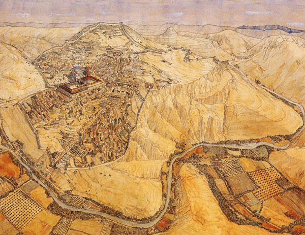 Reconstruction of the city of Bilbilis, where you can see the plan of its walls. |