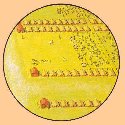 Detalle de la zona donde se encontraban instaladas las tiendas de los soldados, procedente de CONNOLLY, Peter: Greece and Rome at War, Londres, 2006. |