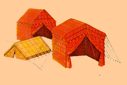 Detalles de las tiendas de campaña de los soldados en el campamento. Las tiendas rojas pertenecían a los centuriones, procedente de CONNOLLY, Peter: Greece and Rome at War, Londres, 2006. |