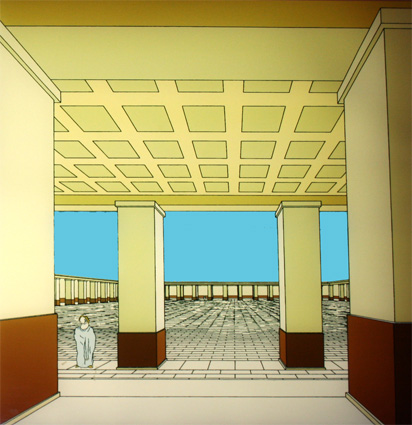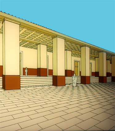 Otra vista de la reconstrucción del foro de Caesar Augusta con el doble pórtico, escalinata y plaza abierta al aire libre, procedente de los dioramas del Museo del Foro de Cesaraugusta. (Foto: Roberto Lérida Lafarga 28/04/2008) |
