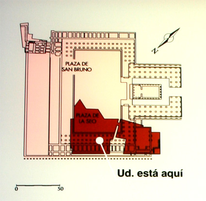 Planta del foro de Tiberio bajo la plaza de la Seo, procedente de los dioramas del Museo del Foro de Cesaraugusta. (Foto: Roberto Lérida Lafarga 28/04/2008) |