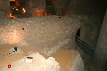 Gran cloaca de época de Tiberio que discurre casi bajo el cardo maximus. (Foto: Roberto Lérida Lafarga 28/04/2008) |