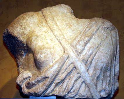 Restos de estatuas y de decoración del frons scaenae. (Fotos: Roberto Lérida Lafarga 28/04/2008) |