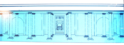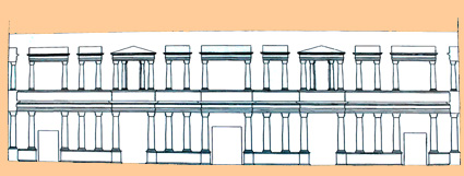 Reconstrucción de la fachada del lado sur del cuadripórtico del teatro de Caesar Augusta, según los paneles informativos del Museo del Teatro de Caesaraugusta. (Foto: Roberto Lérida Lafarga 28/04/2008) |
