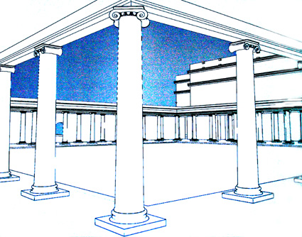 Reconstrucción del cuadripórtico del teatro de Caesar Augusta, según los paneles informativos del Museo del Teatro de Caesaraugusta. (Foto: Roberto Lérida Lafarga 28/04/2008) |