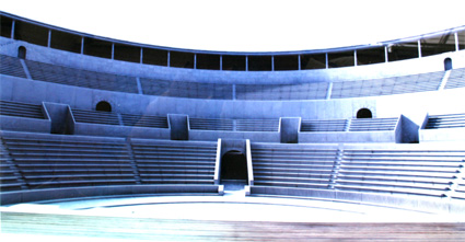 Reconstrucción del teatro romano de Caesar Augusta, según los paneles informativos del Museo. (Foto: Roberto Lérida Lafarga 28/04/2008) |