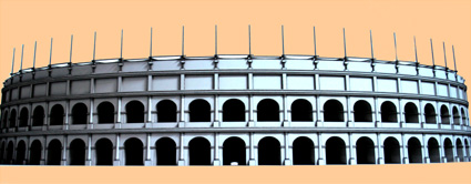 Reconstrucción de la fachada del teatro de Caesar Augusta, según los paneles informativos del Museo del Teatro de Caesaraugusta. (Foto: Roberto Lérida Lafarga 28/04/2008) |
