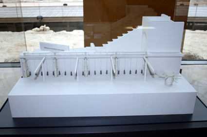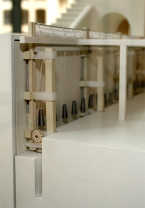 Reconstrucción en maqueta del sistema de elevación del aulaeum del teatro de Caesar Augusta, según los paneles informativos del Museo del Teatro de Caesaraugusta. (Foto: Roberto Lérida Lafarga 28/04/2008) |