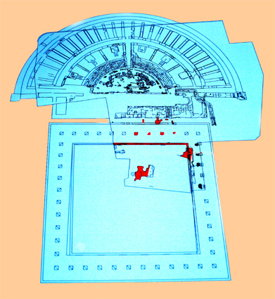 Planta del cuadripórtico y del teatro de Caesar Augusta, según los paneles informativos del Museo del Teatro de Caesaraugusta. (Foto: Roberto Lérida Lafarga 28/04/2008)