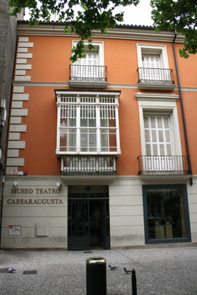 En el siglo I d. C., en los últimos años del imperio de Tiberio, fue posible que los habitantes de Caesar Augusta acudieran ya a su recién acabado teatro romano. Este edificio mantuvo su esplendor y uso durante dos siglos, sufriendo una remodelación al final del siglo I d. C. con la pavimentación del mármol de la orchestra y quizás de todo el edificio, hasta que en el siglo III empezó a ser desmantelado. Este gran edificio público ocupaba cuatro manzanas de la ciudad romana (regio antica dextrata) a unos 40 metros de su muralla, espacio que ya había sido reservado para tal uso en la planificación de la ciudad en época de Augusto. Lamentablemente, parte del teatro romano no ha sido excavado por encontrarse bajo la iglesia del Sagrado Corazón y bajo el propio edificio del museo y de la calle. |