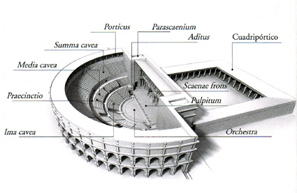Reconstrucción del teatro romano de Caesar Augusta, según folleto informativo del Museo. |