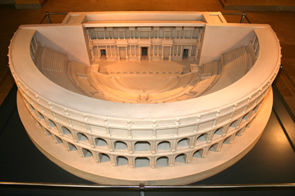Reconstrucción del teatro romano de Caesar Augusta en una maqueta del Museo. (Foto: Roberto Lérida Lafarga 28/04/2008) |