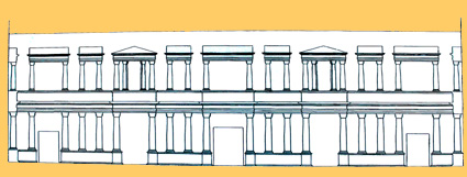 Reconstruction of the façade of the south sideof the quadriporticum of the theatre of Caesar Augusta, according to the explanatory panels of the Museum. (Photo: Roberto Lérida Lafarga 28/04/2008) |