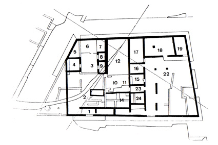 Planta de la Casa de la Tortuga procedente de los paneles informativos del recinto arqueológico. (Foto: Roberto Lérida Lafarga 21/06/2008) |