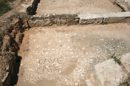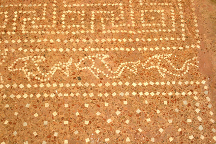 Vestibulum de la Casa de la Tortuga con el mosaico con inscripción. (Foto: Roberto Lérida Lafarga 21/06/2008) |