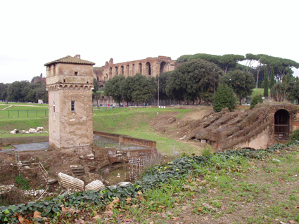 Sin embargo la fisonomía final del edificio la adquirió a lo largo de los siglos I a. C. y I d. C.: en el 55 a. C. Cneo Pompeyo instaló unas vallas de hierro para proteger a los espectadores; en el 46 a. C. Julio César ensanchó la arena por el este y el oeste y la rodeó con un foso llamado Euripo –en honor al estrecho canal que separa Grecia central de la isla de Eubea-, reconstruyó las viejas carceres, construyéndolas de piedra caliza, y acondicionó las laderas del Aventino y del Palatino para que el edificio pudiera albergar a unos 150.000 espectadores; en el 33 a. C. Agripa, bajo las órdenes de Augusto, duplicó los Septem Ova con siete delfines de bronce que se bajaban cada vez que se completaba una vuelta alrededor de la spina. En el año 10 a. C. Augusto hizo traer de Heliópolis, en Egipto, el obelisco de Ramsés II –que actualmente se encuentra en la Piazza del Popolo en Roma- para colocarlo en el centro del circo; además, hizo construir sobre la cavea –“graderío”- del monte Palatino un palco de honor –pulvinar- desde el cual observaban las carreras el emperador, su familia, sus amigos y sus invitados. El emperador Claudio reemplazó las metae de madera por columnas de bronce dorado, mandó construir las gradas en piedra y sustituyó las carceres de piedra caliza por carceres de mármol. Nerón, en el 64 d. C., construyó nuevas gradas para los nobles romanos y agrandó la pista cegando el Euripo. Nerón logró que el circo tuviera más gradas y que la espina fuera más ancha y pudiera rellenarse en ocasiones de agua para llevar a cabo batallas navales -naumachiae-. El emperador Tito mandó construir en el año 80 d. C. una puerta triunfal en el principal acceso del recinto para conmemorar el saqueo de Jerusalén. Finalmente los emperadores Domiciano y Trajano ensancharon la cavea. Constancio II hizo colocar un obelisco de Tutmosis III procedente de Tebas y que ahora se encuentra en la plaza de San Juan de Letrán. La última carrera tuvo lugar en el año 549 y fue organizada por el rey ostrogodo Totila. El edificio fue abandonado y pasto de los incendios y de la rapiña, así como el enterramiento de su estructura por sucesivas inundaciones. En el siglo XX se derribaron los edificios que había en el valle Murtia sobre el antiguo circo, sin que por ahora se hayan finalizado las excavaciones arqueológicas del mismo. |