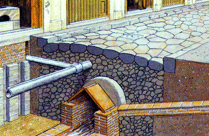 Reconstrucción del sistema de alcantarillado de Roma (Fotografía de CONNOLLY, P. y DODGE, H., La Ciudad Antigua. La vida en la Atenas y Roma clásicas, Madrid, 1998) |