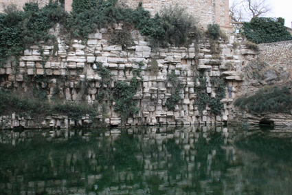 Dentro de la localidad de Sádaba uno debe dirigirse al Castillo; justo detrás del castillo, entre este y unas pequeñas casas, sale un camino rural no asfaltado desde el que se ve una balsa de agua y unas ruinas próximas a un pequeño pinar; las ruinas son la citada sinagoga. Para llegar se toma el camino rural y a unos 300 metros se llega al pinar donde hay un gran cartel de información sobre el canal de las Bardenas; aquí hay una bifurcación; es recomendable coger el camino de la izquierda que se adentra en el pinar; a unos 100 metros se llega al canal junto al cual, a la izquierda, hay un camino asfaltado; se coge este camino asfaltado que deja el canal a la izquierda y el pinar a la derecha; del camino salen pequeñas pistas forestales a la derecha que se adentran en el pinar; coger la segunda –cuidado porque es fácil pasársela- que nos lleva a un campo de cereal y a las ruinas de la sinagoga. Otra forma de llegar es dirigirse a Sádaba por la carretera A-1201 en dirección a Uncastillo y a la altura del kilómetro 73 se toma una pista asfaltada a la derecha que va paralela al canal de las Bardenas durante 1,2 kilómetros; dejar entonces el coche y andar unos 150 metros hacia el sur. |