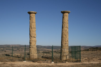 Foro de Tarraca y detalle de las dos columnas etruscas que se conservan (Fotos: Roberto Lérida Lafarga 3/11/2007) |