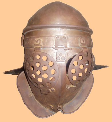 Reconstrucción de un casco de gladiador. Anfiteatro de Nemausus (Nïmes, Francia). (Foto: Roberto Lérida Lafarga 14/08/2007) |