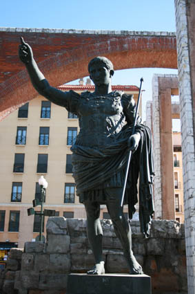 Copia en bronce de la estatua de Augusto de Prima Porta. Murallas Romanas de Caesar Augusta (Zaragoza). (Foto: Roberto Lérida Lafarga 3/11/2007 ) |