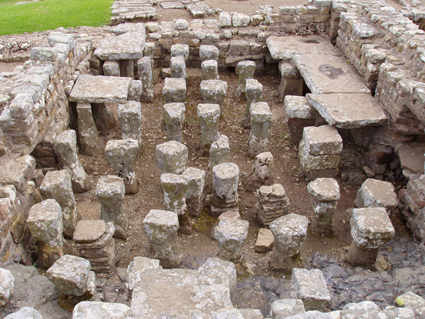 Hypocaustum in the praetor's house of Vercovicium, nowadays Housesteads Fort, near the Hadrian wall (United Kingdom) (Photo: Roberto Lérida Lafarga 21/7/2004) |