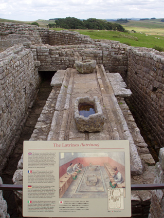 Reconstruction of the latrines of Vercovicium, nowadays Housesteads Fort, near the Hadrian wall (United Kingdom) (Photo: Roberto Lérida Lafarga 21/7/2004) |