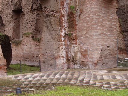 Muros con opus testaceum conservado en las termas de Caracalla, en Roma (Foto: Roberto Lérida Lafarga 29/12/2004) |