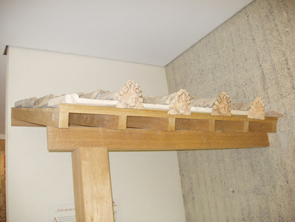 Disposición de tegulae, imbrices y antefixi en la reconstrucción de un tejado. Museo de Vasio (hoy Vaison la Romaine, Provenza, Francia). (Foto: Roberto Lérida Lafarga 6/8/2007) |