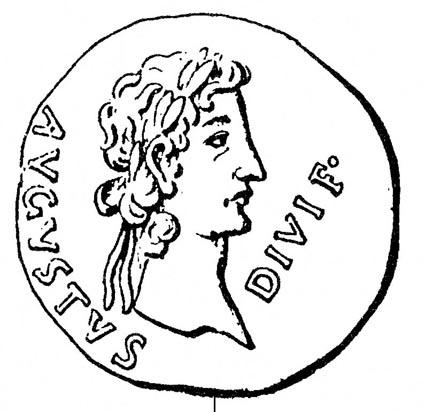 Monedas de Caesar Augusta con la efigie de Augusto y con el rito fundacional de la ciudad según DELGADO, A., Nuevo método de clasificación de las medallas autónomas de España, Sevilla, 1871-1876. (Foto procedente de BELTRÁN LLORIS, Miguel y FATÁS CABEZA, Guillermo: Historia de Zaragoza 2: César Augusta, ciudad romana, Zaragoza, 1998) |