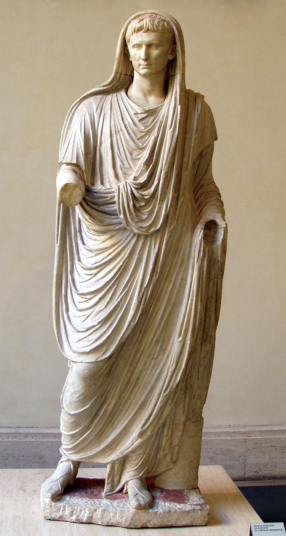 Estatua del emperador Octavio Augusto vestido como un Pontífice Máximo. Museo Nazionale Romano. (Foto: Roberto Lérida Lafarga 31/12/2004) |