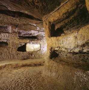 Nichos para los cadáveres en las catacumbas de San Sebastián, en Roma. |