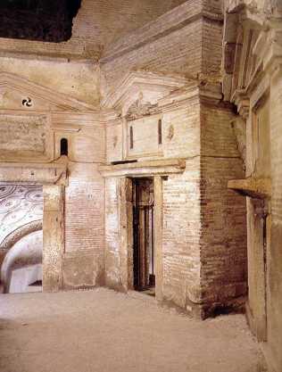 Entrada a diversos panteones familiares dentro de las catacumbas de San Sebastián, en Roma. |