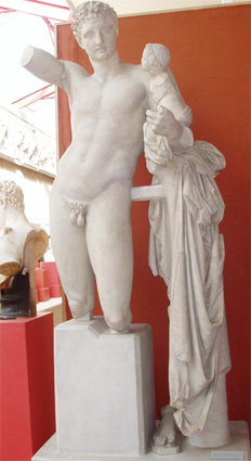 Hermes con Dionisos niño, obra del escultor griego Praxíteles; copia en el Museum of Classical Archaeology. Cambridge. (Foto: Roberto Lérida Lafarga 24/07/2007) |