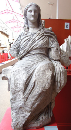 Estatua acéfala de Deméter-Ceres hallada en la villa romana de La Malena (Azuara, Zaragoza), datada en el siglo IV d. C. Museo Provincial de Zaragoza. (Foto: Roberto Lérida Lafarga 03/01/2008) |