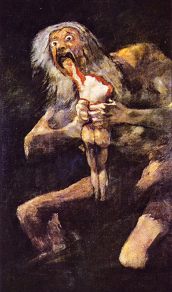 Cuadro titulado "Saturno devorando a un hijo", Francisco de Goya. Museo del Prado (Madrid) |