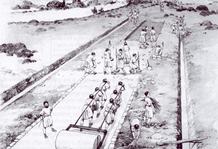 Construction of a Roman road, picture from HAMEY, L. A. y HAMEY, J. A.: Los ingenieros romanos, Madrid, 1990 |