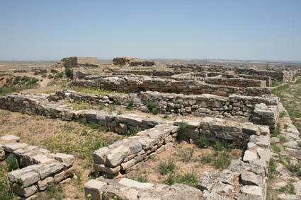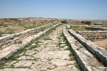 Vista de una calle principal de la acrópolis de Sedeisken con sus aceras. (Foto: Roberto Lérida Lafarga 21/06/2008) |