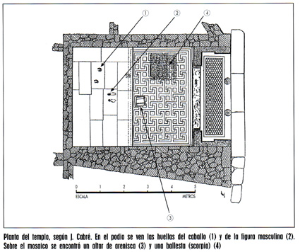 Plano del templo, procedente de BELTRÁN LLORIS, Miguel et alii, El Cabezo de Alcalá. Azaila (Teruel), Zaragoza, 2001. |