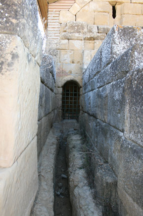 La estructura de las termas sería la siguiente (los números en paréntesis hacen referencia a las partes de las termas en el plano que hay abajo y a las fotos que abajo se ofrecen): se accedería por una entrada aporticada con tres arcos (1) hasta un vestíbulo a cielo abierto; tras descender tres escalones se llegaría a una exedra con bancos tallados (2) en piedra y decorados con murales de vivos colores (rojo, amarillo y verde) donde esperarían servidores y esclavos; un espacio abovedado (3), todavía conservado, comunicaría la exedra con el apodyterium (4) –la habitación vestuario donde se guardaban las ropas- con loculi –las hornacinas talladas en el muro que servían de taquillas, generalmente cerradas con puertas de madera- y probablemente con bancos adosados a la pared; esta sala servía de lugar de negocios, de sala de espera, lugar de encuentro y conversación; es la parte mejor conservada del conjunto; un corredor (5) con bóveda de medio punto conducía a los gimnasios (6 y 7) que estarían al aire libre; desde el apodyterium se pasaba a una sala que pudo ser un elaeothesium o destrictorium (8), es decir, sala destinada a masajes con aceites aromatizados –unctiones o tractationes- y a depilaciones; también desde el apodyterium o desde el elaeothesium a través de una suspensura –escalera para subir a otra sala- se pasaría a la piscina de baños templados –tepidarium- (9); de aquí se pasaría a la piscina de los baños fríos –frigidarium- (10), cuya profundidad -1,20 metros- revela que no fue utilizada como piscina para nadar, sino más bien para hacer abluciones, y cuyo suelo y sus respectivas paredes estaban revestidas de opus caementicium hidráulico, para evitar las fugas de agua; este frigidarium tenía unas escaleras de descenso y un desagüe mediante un tubulus –tubo- de plomo conservado en el Museo Provincial de Zaragoza; en otra sala (11) se encontrarían los baños calientes –caldarium-, comunicada directamente con el laconicum o concamerata sudatio (12), una especie de sauna para la transpiración; al exterior del edificio se puede contemplar un conducto de agua (13) que salía directamente de algunas salas (3 y 4) y, por último, un canal de desagüe corría paralelo a los muros de otras salas (4 y 9) para evacuar las aguas residuales. |