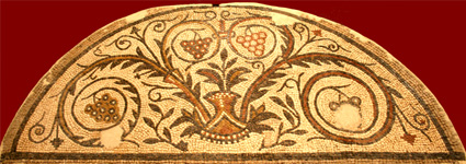 En el mismo corredor del calendario, en una exedra se conservó un mosaico –con dimensiones de 0,97 x 2,07 metros) decorado con una vasija de la que brotaban tallos ondulantes de hojas, zarcillos y racimos de uva. En otra estancia se encontró otro mosaico con motivos geométricos (3,10 x 2,06 m) donde tres orlas de trenzado doble, taqueado negro sobre blanco y trenzado triple, enmarcan dos octógonos tranzados que rodean un nudo de Salomon y una roseta de cuatro hojas, ambos emblemas militares.
